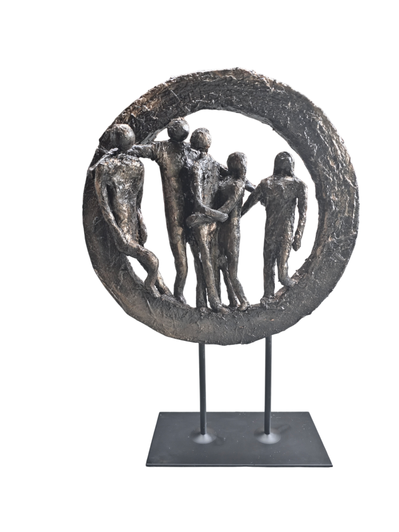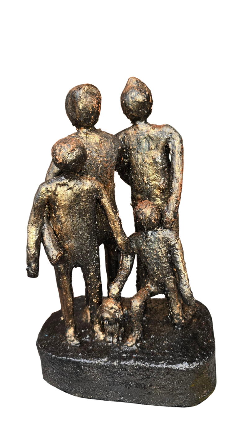 Dit beeld mocht ik maken voor een 60 jarig huwelijk. Het echtpaar met hun rijkdom om hun heen. "Opa is duivenmelker en oma is gek op haar tuin". Dus hoe leuk is dit, hun kinderen afgebeeld als duivenstelletjes en hun kleinkinderen en achterkleinkinderen afgebeeld als een bloementuin om hun heen.